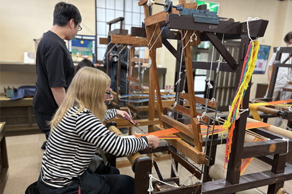 織の資料館白山工房(紬織物体験)江戸時代に建てられた古民家で昼食