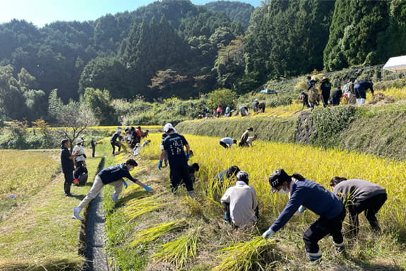 地域を元気にするため、さまざまな活動を行う「さんろく自然塾うめだファーム」による体験メニュー。ピザ焼体験、餅つき、当帰塩作り、モグサ作り、野菜の収穫、田植え・稲刈り、薬草摘みや手斧による薪割りなど、メニューはさまざま。金剛登山(朝原寺道散策)なども。