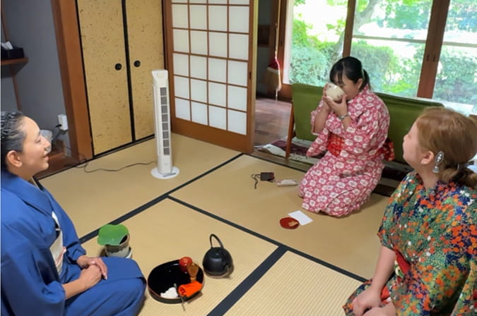 三万平米の敷地を誇る宿。母屋には釜戸や囲炉裏、井戸といった古式調理器が、離れにはバーベキュー場やファイヤーサークルがあり、さまざまな自然体験ができます。畑や土地に自生する野菜を収穫し、古式調理器を使って共同調理体験。ほかにも着物体験やお抹茶体験など、生活体験が充実。