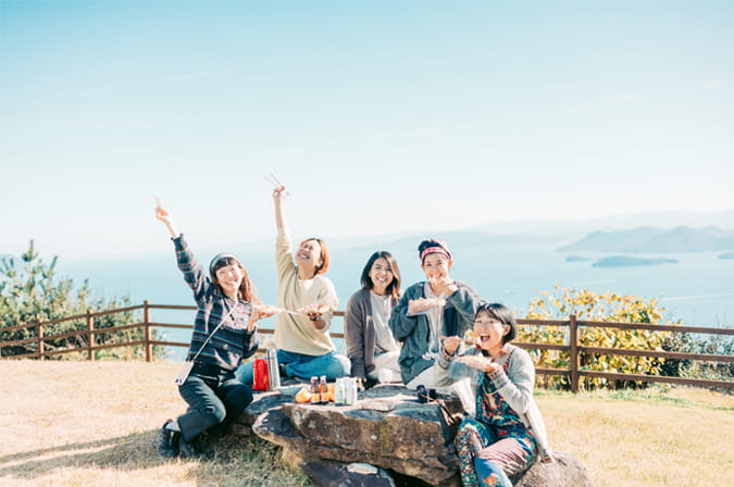 歴史・食・アートをめぐる豊島のツアー。旅は島のおばちゃんの手作り弁当を食べるところからはじまります。水をテーマに、棚田の湧水の恵みを受けた食や手仕事に触れ生産者と語らうのが旅の醍醐味。最後は海で地引網を行い、自ら獲った魚を調理して島民と一緒に食べることで豊島の自然と暮らしを実感できる4日間です。