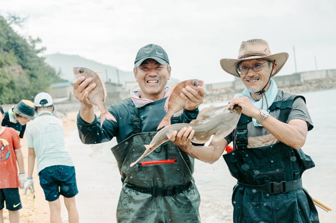 地元の漁師たちと島の浜辺で網を引く昔ながらの漁法を体験し、その場で魚をさばき味わうといった地域の食文化に触れる体験ができます。