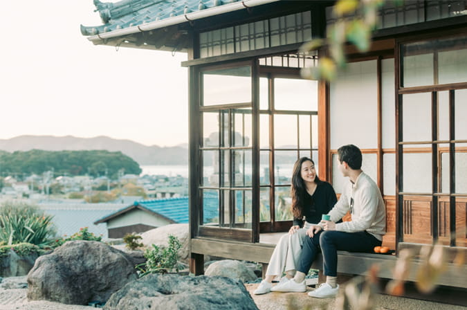 築80年の古民家を改修し、瀬戸内海を望む宿として開業。畑や里山に囲まれた環境で、ヤギやニワトリとふれあうなどの体験も人気です。朝食には地元の食材や、近隣住民が手づくりする焼きたてパンを提供。お部屋の窓からは集落の町並みや瀬戸内海を見渡すことができます。「本館」と「別館」は各一棟貸しで1日1組限定。