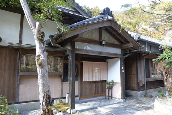 築90年以上の古民家を改装した1棟貸しの宿泊施設です。館内は庭園を眺められる和室や建築当時の趣を残す和室に加えて、自炊用のキッチンや露天風呂、ウッドデッキも備えており、グループでの長期滞在にも最適です。食事は地元食材をたっぷりと使った創作料理が注文できます。