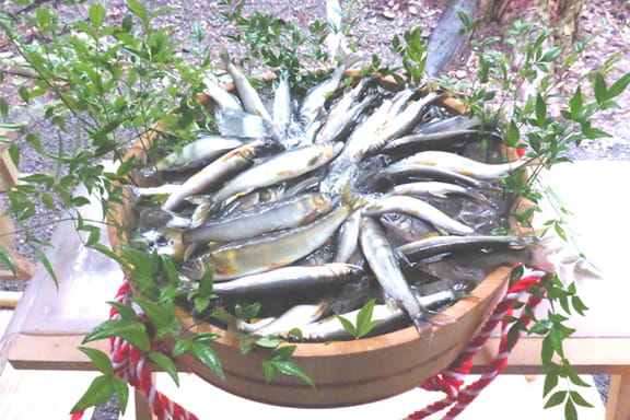 その宮川流域でとれた天然の鮎は、2000年以上前から伊勢神宮や別宮瀧原宮の神饌として献上。瀧原宮近くにある水戸神神社では、生きた鮎を使って1年の五穀豊穣を占う「おんべまつり」という神事が1300年以上前から続いています。鮎は地域に根差した貴重な食材なのです。