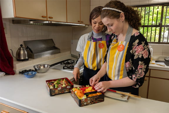 營養師教導下的料理體驗。調理山梨縣的在地美食「餺飥」,並將從田裡摘採的新鮮食材製作成天婦羅。還可以學習魚的處理方法和熬製高湯的技巧,共同製作晚餐的同時,愉快的學習日本料理的特別體驗方案。