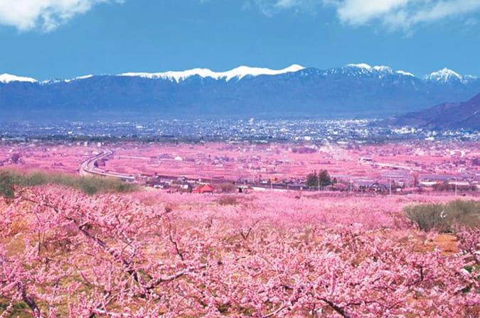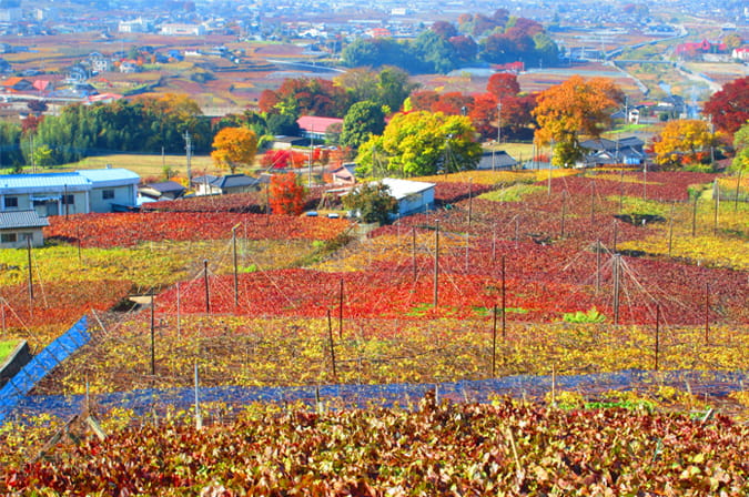 「水果公園」的視野絕佳,白天可以由正面眺望富士山、御坂連山,還能將遠處的南阿爾卑斯等群山盡收眼底。到了夜晚請盡情欣賞美麗的星空,以及獲選為「新日本三大夜景」的甲府盆地夜景。