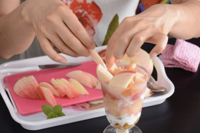 挑戰製作使用當季水果的聖代。切開水果之後,與其他配料一起進行漂亮的擺盤。在原創的聖代完成後拍照留念,然後趁著冰淇淋還未融化時享用!除了聖代製作,也提供使用當地食材的體驗活動以及多種創作體驗。